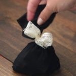 Ingredientes: Meia fina, mistura de pétalas de flores secas, fita ou barbante.